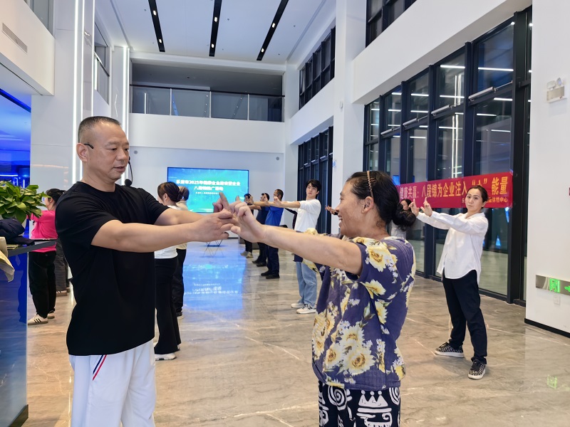 作为千年经典养生功法,八段锦动作舒缓圆活,能增进体质、强化脏腑、辅助防治慢性病、缓解压力、改善睡眠,尤其适合职场人士调节身心。此次活动是公司践行“一家人” 理念的体现,既为员工搭建了学习平台,也助力培养健康生活方式、增强团队凝聚力。