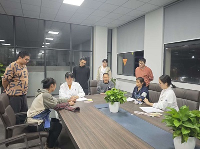 体检中心派出多位专家,连续五周、每周三晚走进办公室、休息区和车间,为员工提供免费健康咨询与血压测量服务。员工们带着自身或家人的健康疑问前来,专家们耐心解答,让大家收获颇丰。